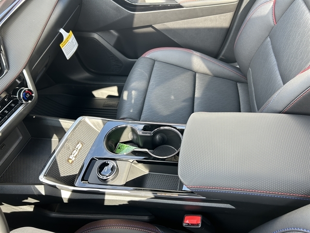 Athletic comfort is the theme in our RS cabin, backed by our Convenience III Pack's heated/ventilated front seats with red contrast stitching, eight-way power for the driver, heated rear seats, memory settings, a heated-wrapped steering wheel, dual-zone automatic climate control, remote start, cruise control, 12V power outlets, keyless access, and pushbutton ignition. Smart infotainment is close at hand with a 7-inch touchscreen, wireless Android Auto®/Apple CarPlay®, WiFi compatibility, voice recognition, Bluetooth®, and a six-speaker sound system.