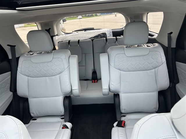Our Platinum cabin has premium amenities, treating you to a panoramic sunroof, heated/ventilated/massaging Ultimate Pack quilted Sanctuary leather power front seats, heated second-row captain's chairs, a power-fold third row, a heated leather power steering wheel, and tri-zone automatic temperature control. Your mobile command center boasts a 13.2-inch touchscreen, 12.3-inch driver display, B&O audio, WiFi compatibility, wireless smartphone connectivity, and wireless charging.