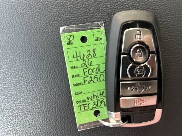 Get into our 2026 Ford F-250 Lariat Crew Cab 4X4 with the Chrome Package and get jobs done with power, intelligence, and a bold Oxford White design! Motivated by a 7.3 Liter V8 providing 430hp to a 10 Speed TorqShift Automatic transmission with selectable drive modes. A robust suspension helps this Four Wheel Drive truck make the most of its impressive towing and payload ratings, and it looks fantastic. Our Ford F-250 shows off LED lighting, fog lamps, PowerScope trailer mirrors with built-in spotlights, running boards, 20-inch chrome PVD wheels, chrome bumpers, a bedliner, and a power-lock/remote-release tailgate.